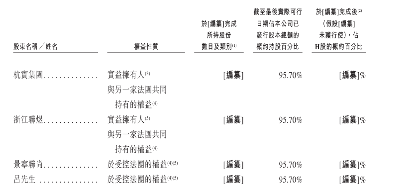 截至2026年1月31日,杭实集团和浙江联煜于已发行股本总额中合共拥有约95.70%权益,二者于2026年2月6日签订的一致行动协议,为公司控股股东。