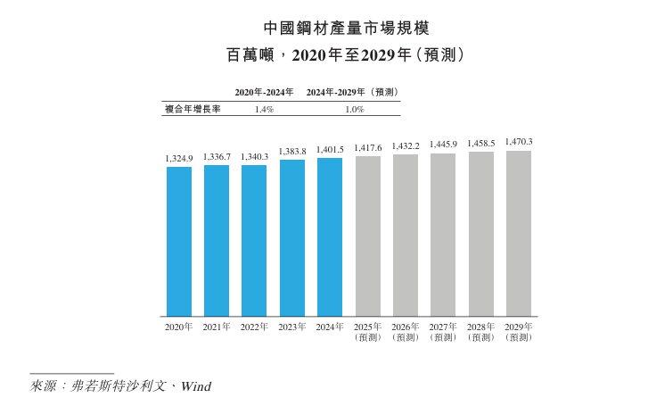 钢材是大宗商品的主要产品之一。随着制造业高端化升级、传统产业设备更新改造,以及新能源汽车、风电光伏等新兴领域需求增长,未来中国钢材产量将保持增长。