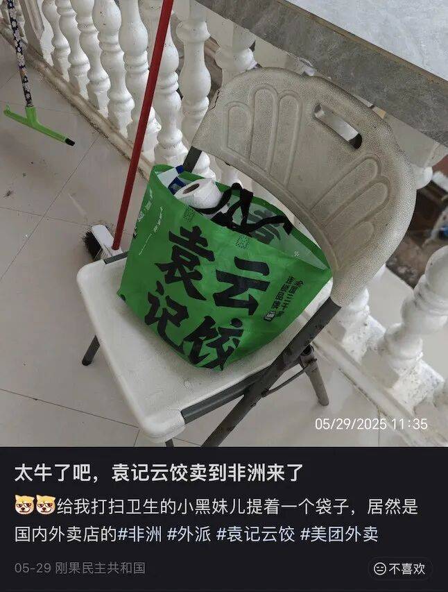 于是,这场奇妙的“双向奔赴”就这样发生了。这些印着品牌logo或外卖品牌的袋子,就这样跨越了半个地球,从中国的垃圾桶边缘,一跃成为了非洲街头流动的文化符号。也意外地完成了一次接地气的“中国制造”出海之旅。